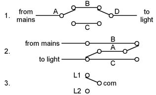 - single wire from one switch to the mains